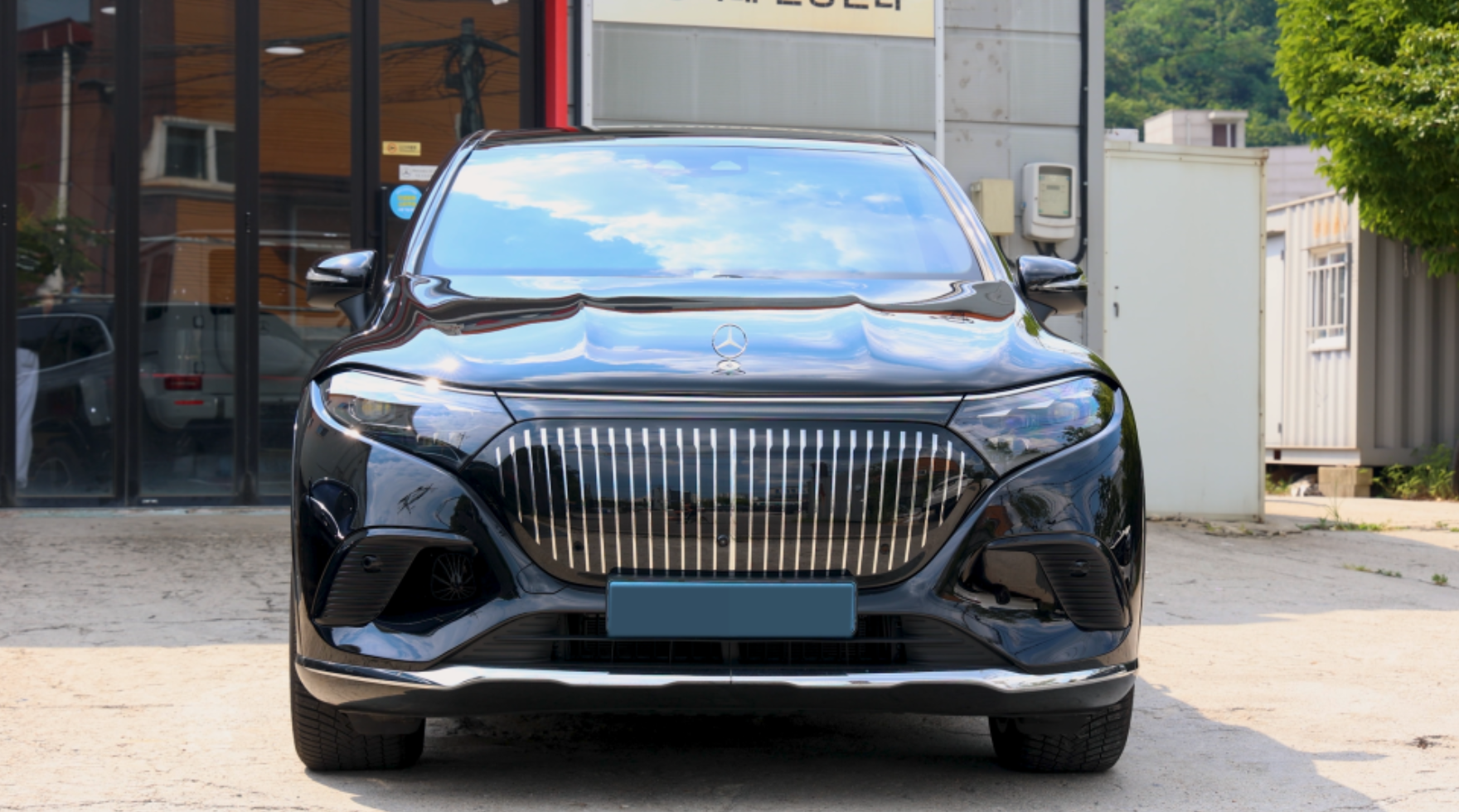 벤츠 EQS SUV 450 Alpine Grey 차량, 마이바흐 순정 그릴 & 본넷 삼각별 장착 완료