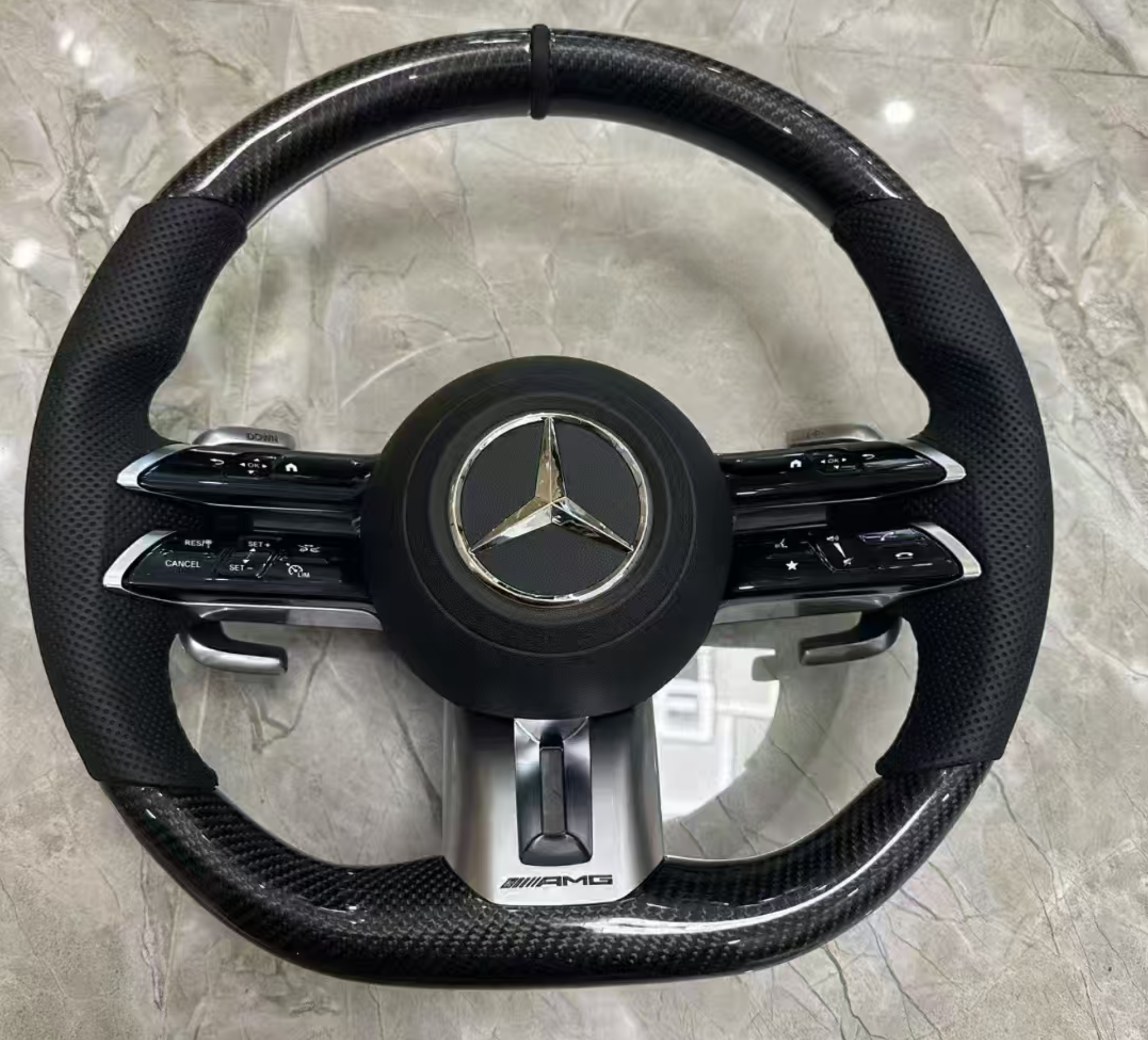 2️⃣ AMG 잠자리 핸들 (듀얼 스포크 구조 / 블랙 버튼 타입)