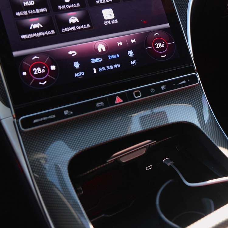 센터 콘솔만 블랙 하이글로시로 구성되어 있어 통일감이 아쉬울 수 있습니다.
