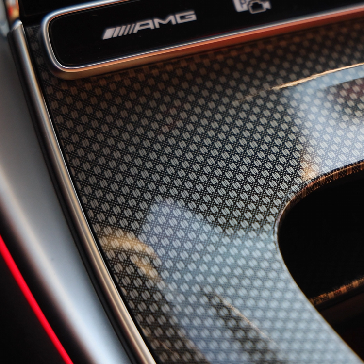 CLE 카브리올레는 실내 일부가 메탈 웨이브 패턴으로 적용되어 있지만,